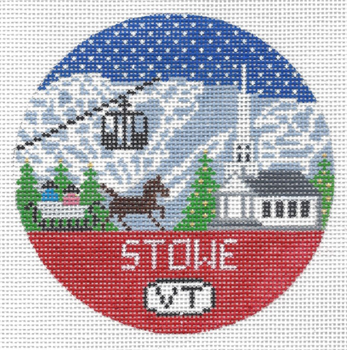 Stowe, VT Round is 4.25" x 4.25" on 18 mesh